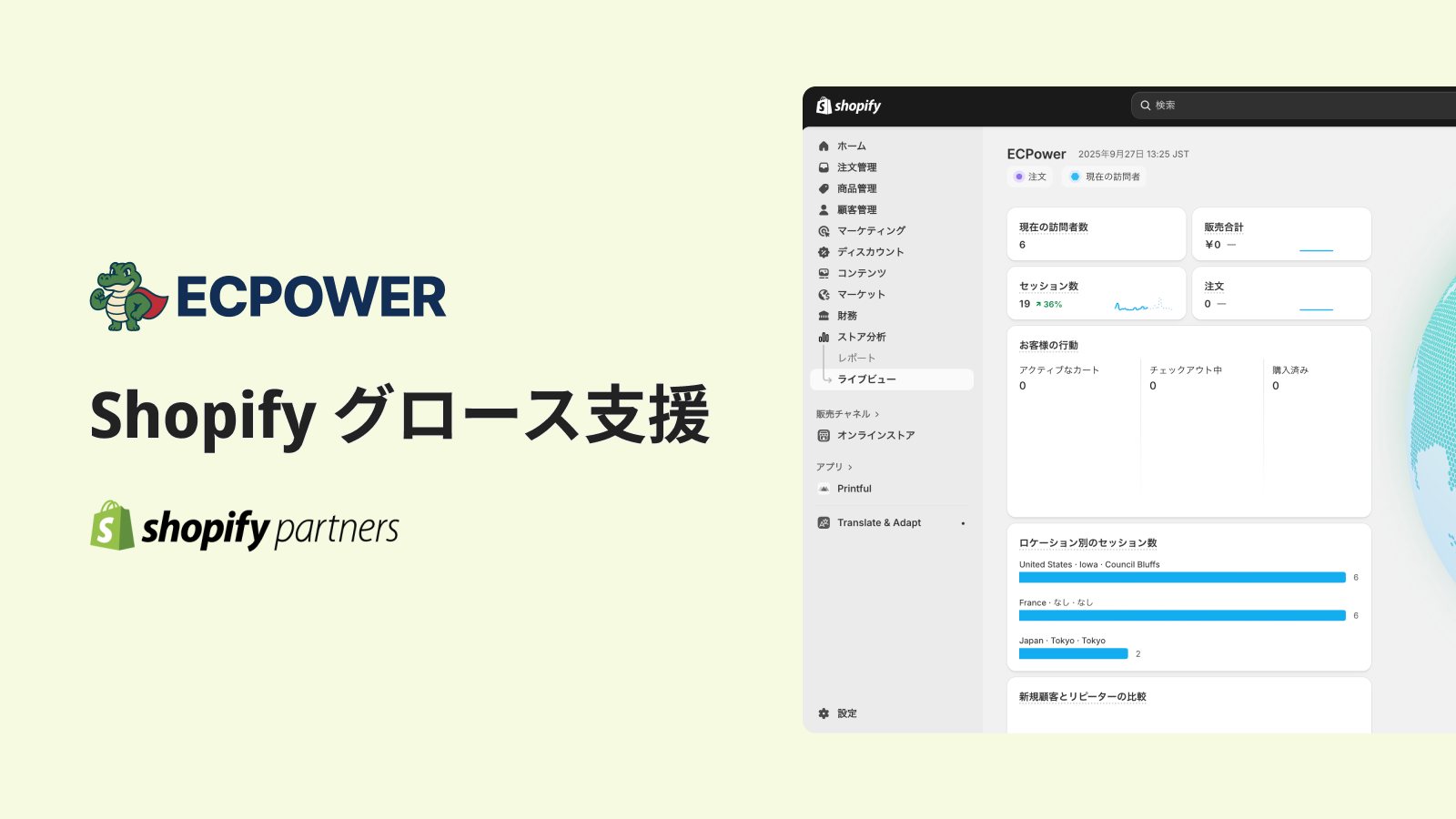 ECPowerはShopifyに特化したEC支援企業です。Shopify Expert認定のECのプロが、構築・運用・CRMまでを一気通貫で支援し、持続的な売上成長を支える仕組みづくりを行っています。