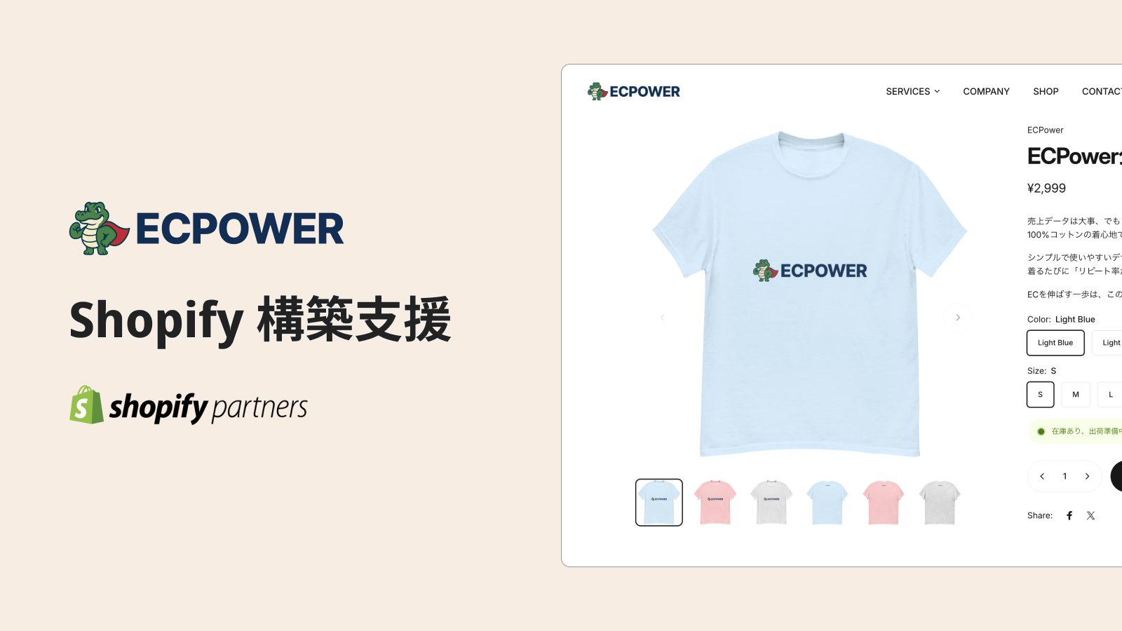 ECPowerはShopifyに特化したEC支援企業です。Shopify Expert認定のECのプロが、構築・運用・CRMまでを一気通貫で支援し、持続的な売上成長を支える仕組みづくりを行っています。